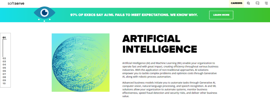 SoftServe manages dozens of new AI/ML projects annually with hundreds of data scientists and AI experts, including PhD-level researchers. The company focuses on moving businesses from Generative AI experimentation to production reality.