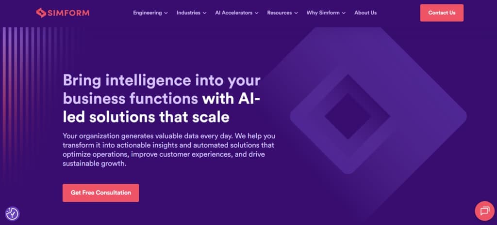 Simform helps businesses industrialize AI through services in generative AI, agentic AI, data science, ML engineering, and MLOps. The company runs readiness and feasibility workshops to prioritize workflows with clear return on investment.